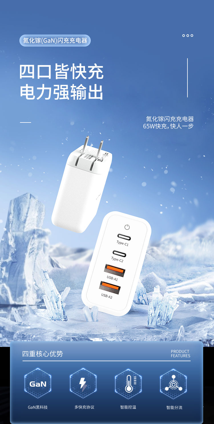 65w氮化鎵閃充充電器快充頭